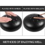 Diese Zungentrommel aus Stahl-Titan-Legierung wird von professionellen Handwerkern in Handarbeit hergestellt. Obwohl es in seiner Struktur einfach ist, ist der Klang sehr angenehm und es ist eine Art Klang wie die Töne Buddhas. Es hat insgesamt elf Klänge in F-Dur. Dies erleichtert das Erlernen und bietet eine größere Bandbreite an Sounds. Auch Anfänger können wunderbare Musik leicht beherrschen und spielen. Es ist sehr gut für den Musikunterricht von Kindern geeignet, sodass er leicht spielen kann und sich nicht langweilig anfühlt. Gleichzeitig, weil seine Stimme sehr ätherisch ist, wird es auch in der spirituellen Heilung und Yoga-Meditation verwendet und ist ziemlich hilfreich, um die Emotionen der Menschen zu beruhigen.