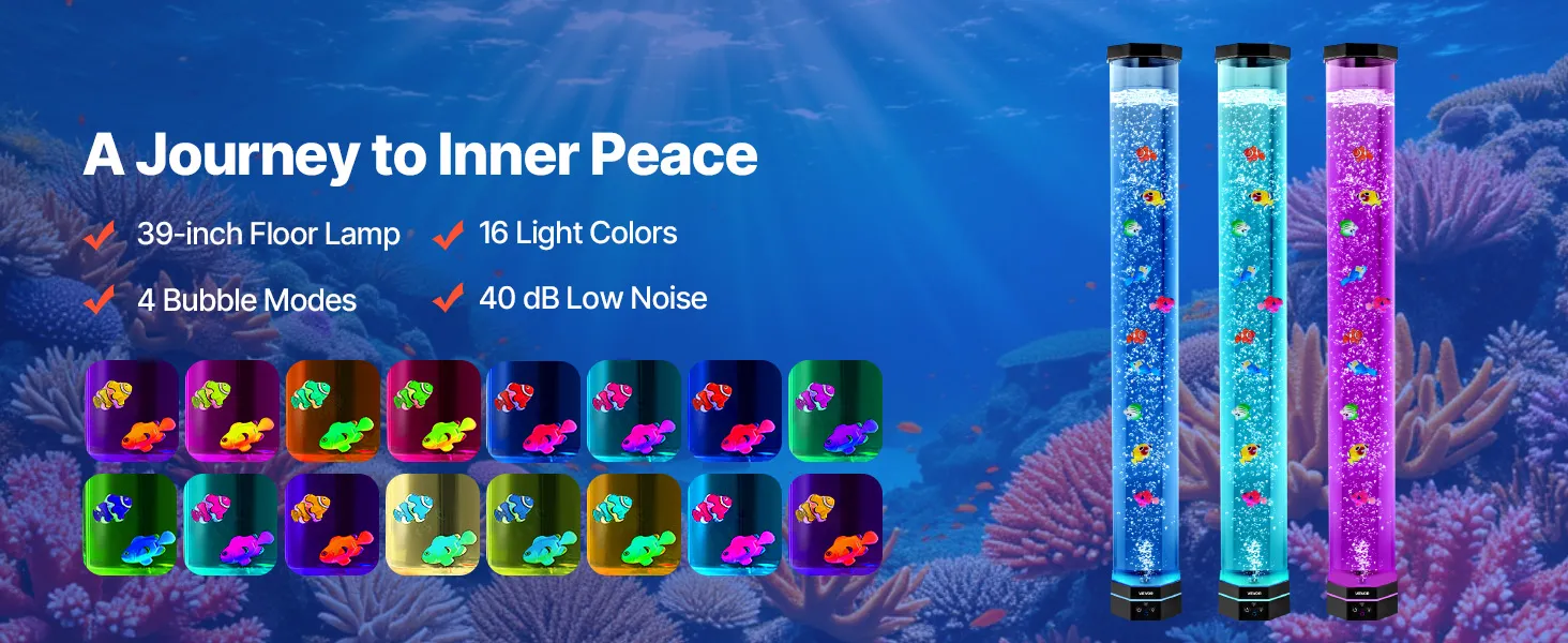 Mit ihren leuchtenden Farben bringt diese Blasenlampe die friedliche Unterwasserwelt in Ihren Raum und schafft eine ruhige und sinnliche Umgebung.
