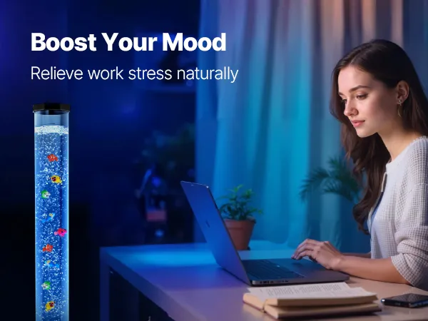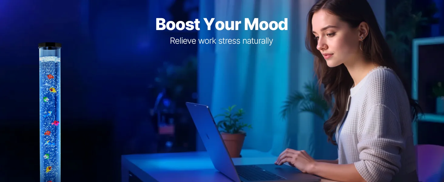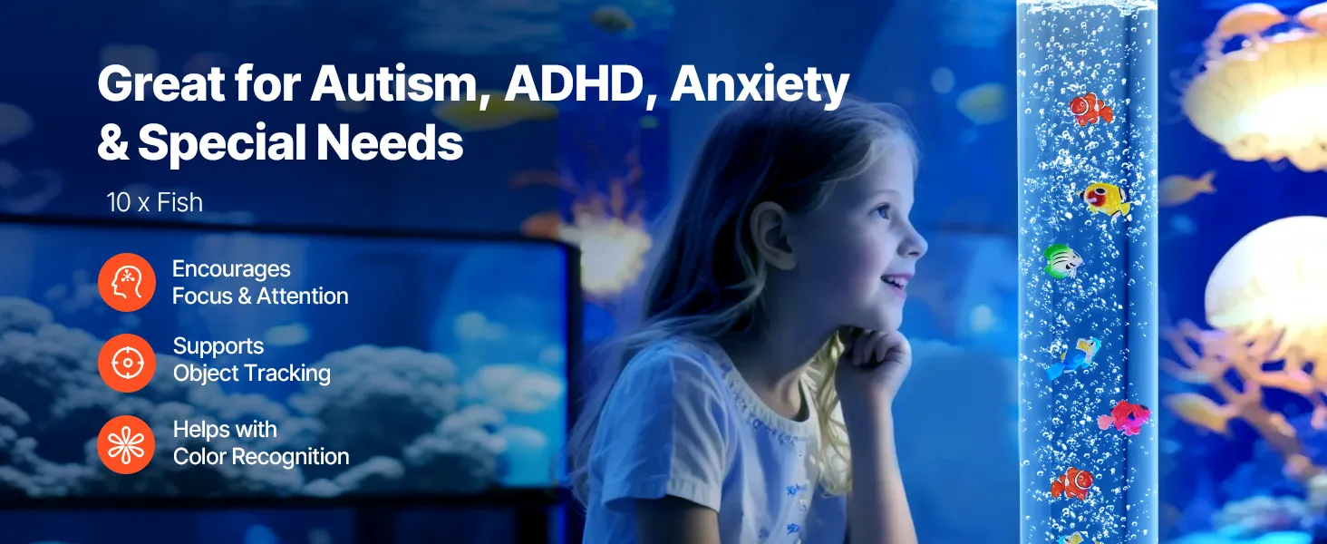 Imitiert die beruhigenden Bewegungen des Meereslebens und hilft so, Stress abzubauen. Unsere Blasenfischlampe ist ideal zur Linderung von Autismus, ADHS und Angstzuständen.