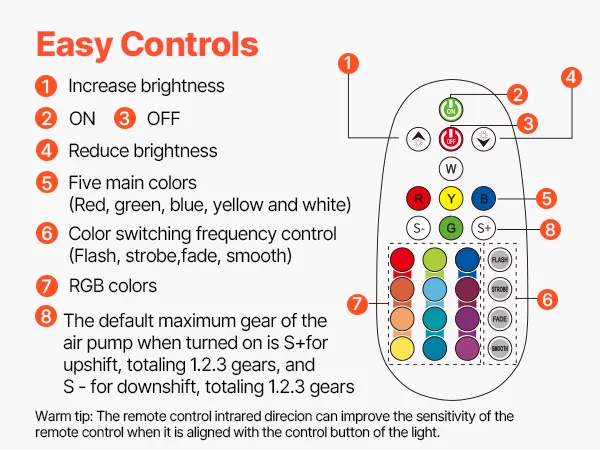 Steuern Sie 16 Lichtfarben ganz einfach mit der Fernbedienung für ein personalisiertes und farbenfrohes Erlebnis.