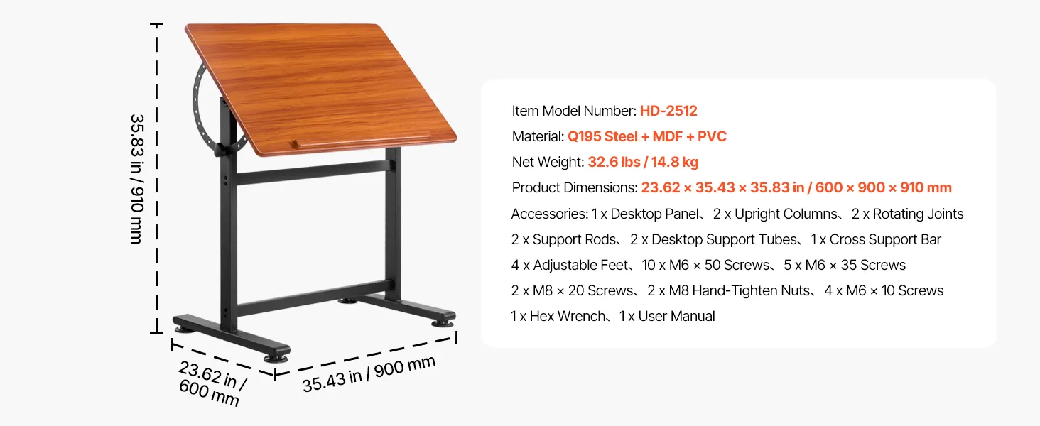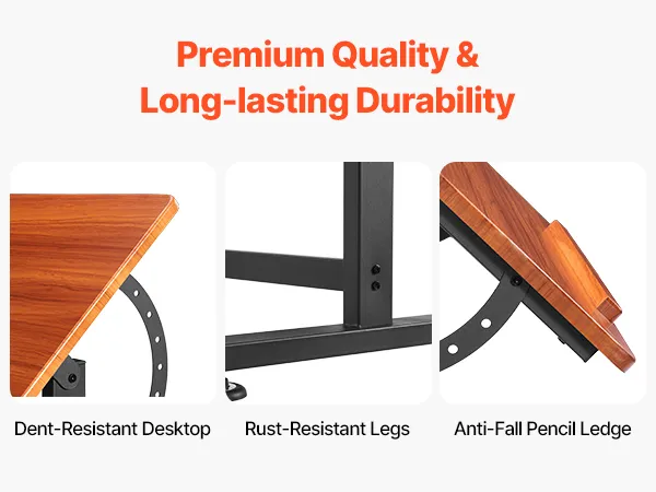 Dieser robuste Zeichentisch lässt sich in mehreren Winkeln einstellen. Dank der verstellbaren Füße kann die Tischplatte präzise nivelliert werden. So können Benutzer je nach Bedarf problemlos zwischen Zeichentisch, Arbeitsplatz und anderen Anwendungen wechseln.