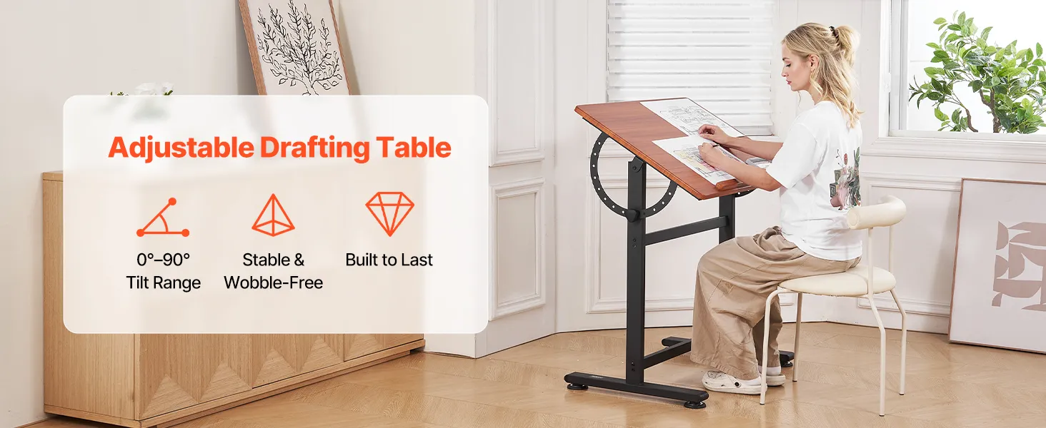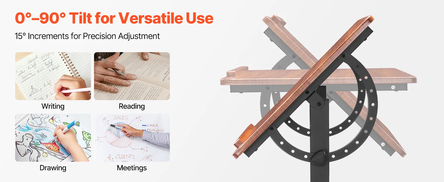 0°-90° verstellbar: Dieser Zeichentisch ermöglicht eine flexible 0°-90°-Verstellung, sodass Sie ganz einfach den idealen Winkel zum Zeichnen finden. Er reduziert effektiv die Belastung von Schultern, Nacken und Augen und ermöglicht so konzentrierteres und effizienteres Arbeiten