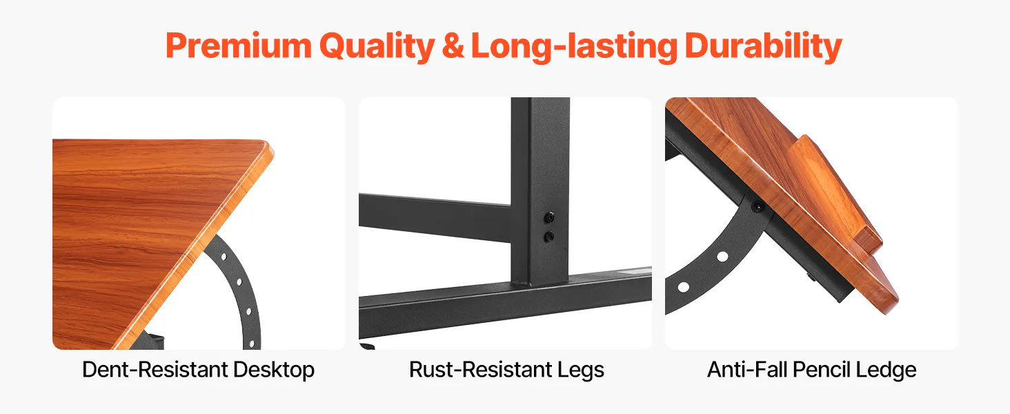 Robust & zuverlässig: Der Maltisch ist aus MDF gefertigt und äußerst tragfähig. Selbst wenn er mit Büchern, Geräten oder anderen schweren Gegenständen beladen ist, bleibt er flach, ohne sich zu verziehen. Die Metallbeine bestehen aus hochwertigen, rostbeständigen Materialien und gewährleisten Stabilität und Zuverlässigkeit.