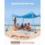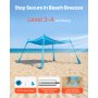 VEVOR Strandzelt mit Sonnenschutz (UPF 50+) 3 x 3 x 2 m, Strandmuschel mit 4 Sandsäcken & Stabilisierungsstangen & Sandschaufeln, Tragbares Sonnensegel für Familienausflüge Camping Angeln Blau