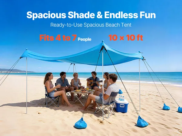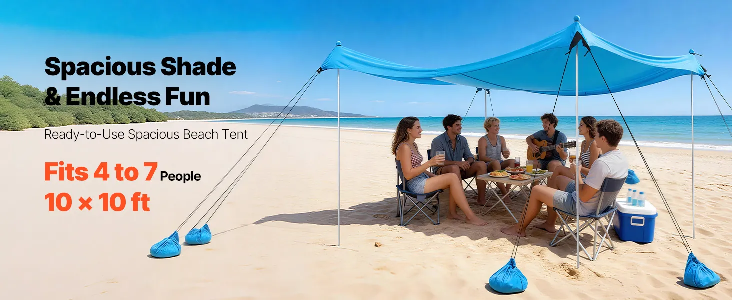 Großzügiger Schattenbereich: Dieses Strandzelt bietet eine 10 x 10 x 6,6 Fuß (3 x 3 x 2 m) große Schattenfläche, ideal für Familien oder Gruppen von 4–7 Personen. Dank der mitgelieferten Sandsäcke und der Sandschaufel lässt es sich schnell und einfach direkt am Strand aufbauen