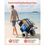 The telescoping handle on this beach dolly with big wheels can be locked in four different positions, from 34 inches to 45 inches high. Taller users set the handle to its highest point so they can stand up straight the whole way from the parking lot to the beach. Shorter users can lower the handle to the right height for them so they can control it without reaching or hunching over.