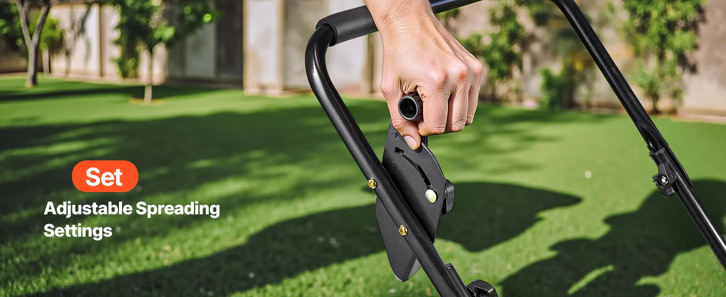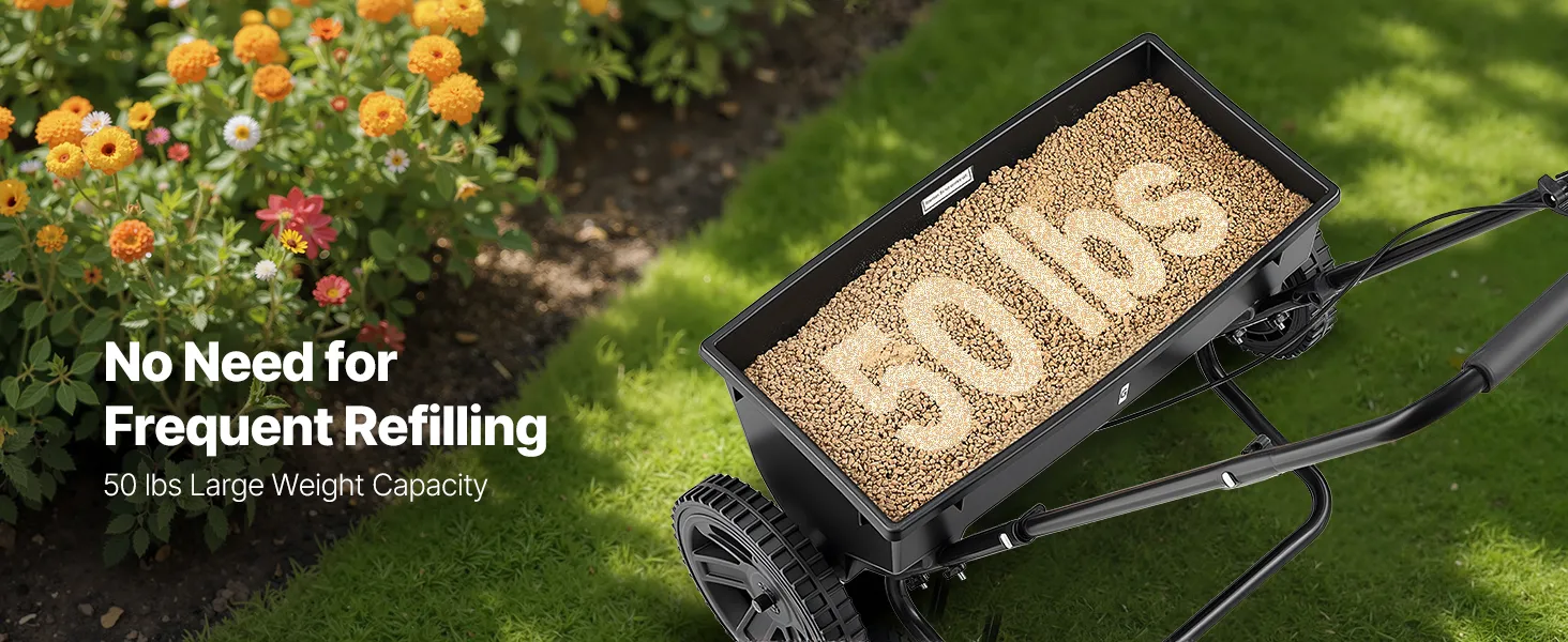 Einfache Installation: Für die Montage ist kein Werkzeug erforderlich. Der Düngerstreuer lässt sich auch von Frauen und Senioren problemlos montieren. Der 23 kg große Trichter reduziert die Nachfüllhäufigkeit und spart Zeit und Mühe für ein konzentrierteres Gartenerlebnis.