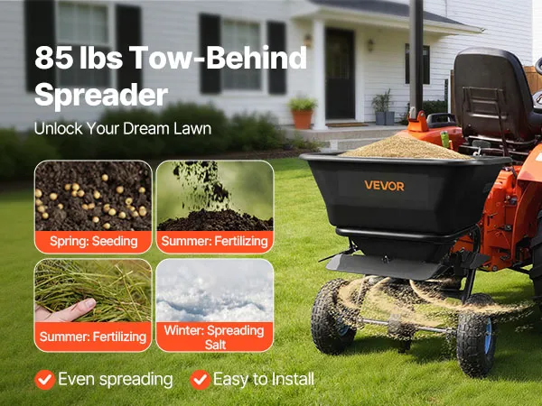 Breite Kompatibilität: Unser Streuwagen mit universeller Anhängevorrichtung lässt sich problemlos an die meisten Rasentraktoren, ATVs und UTVs anschließen und ermöglicht so flexibles Ziehen und problemlose Bedienung
