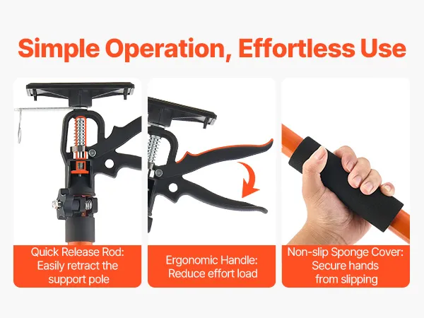 Stabile Unterstützung: Die dicke Deckenstütze aus Karbonstahl mit großem Fußpolster aus PP+PVC verteilt das Gewicht gleichmäßig, haftet sicher auf dem Boden und bleibt an Ort und Stelle, ohne sich zu verbiegen oder zu verrutschen, für langfristige Stabilität