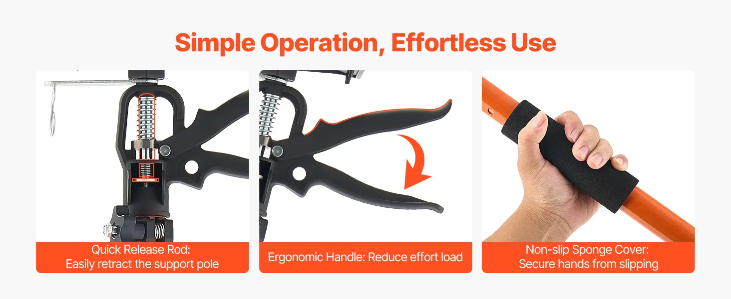 Starke Tragkraft von 70 kg: Jede Einhandstütze trägt bis zu 70 kg und bietet stabilen Halt für Trockenbau, Regale oder Holzarbeiten. Ideal für Baustellen, temporäre Abstützungen oder Hausrenovierungen