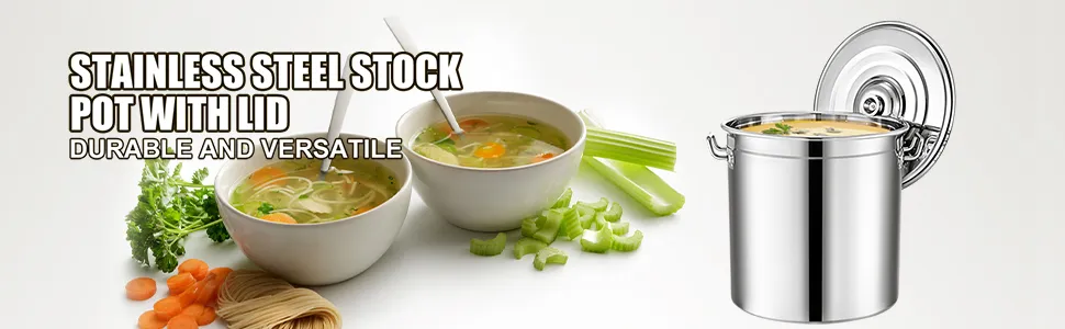 Hier bieten wir Ihnen einen hochwertigen Suppentopf mit Deckel, der ideal zum langsamen Köcheln oder schnellen Kochen geeignet ist. Dieser handelsübliche Suppentopf ist vielseitig einsetzbar, leicht zu reinigen und ein unverzichtbares Grundnahrungsmittel für jede Küche.