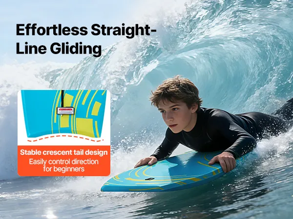 Dieses Boogieboard mit seinem stabilen Halbmond-Heck hilft Anfängern, die Richtung leicht zu kontrollieren und das Gleichgewicht zu halten, was ein sanftes, geradliniges Gleiten auf den Wellen ermöglicht.