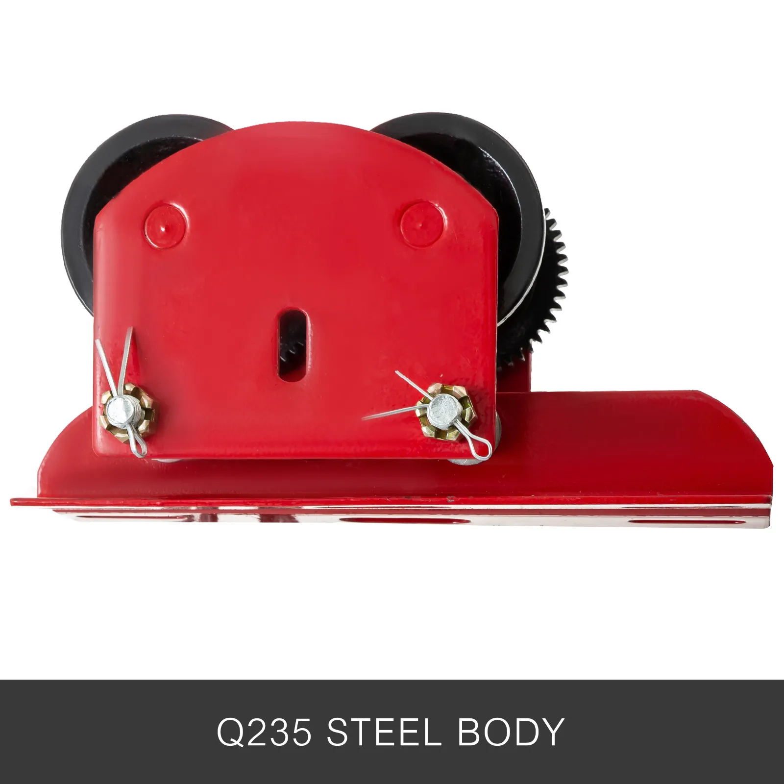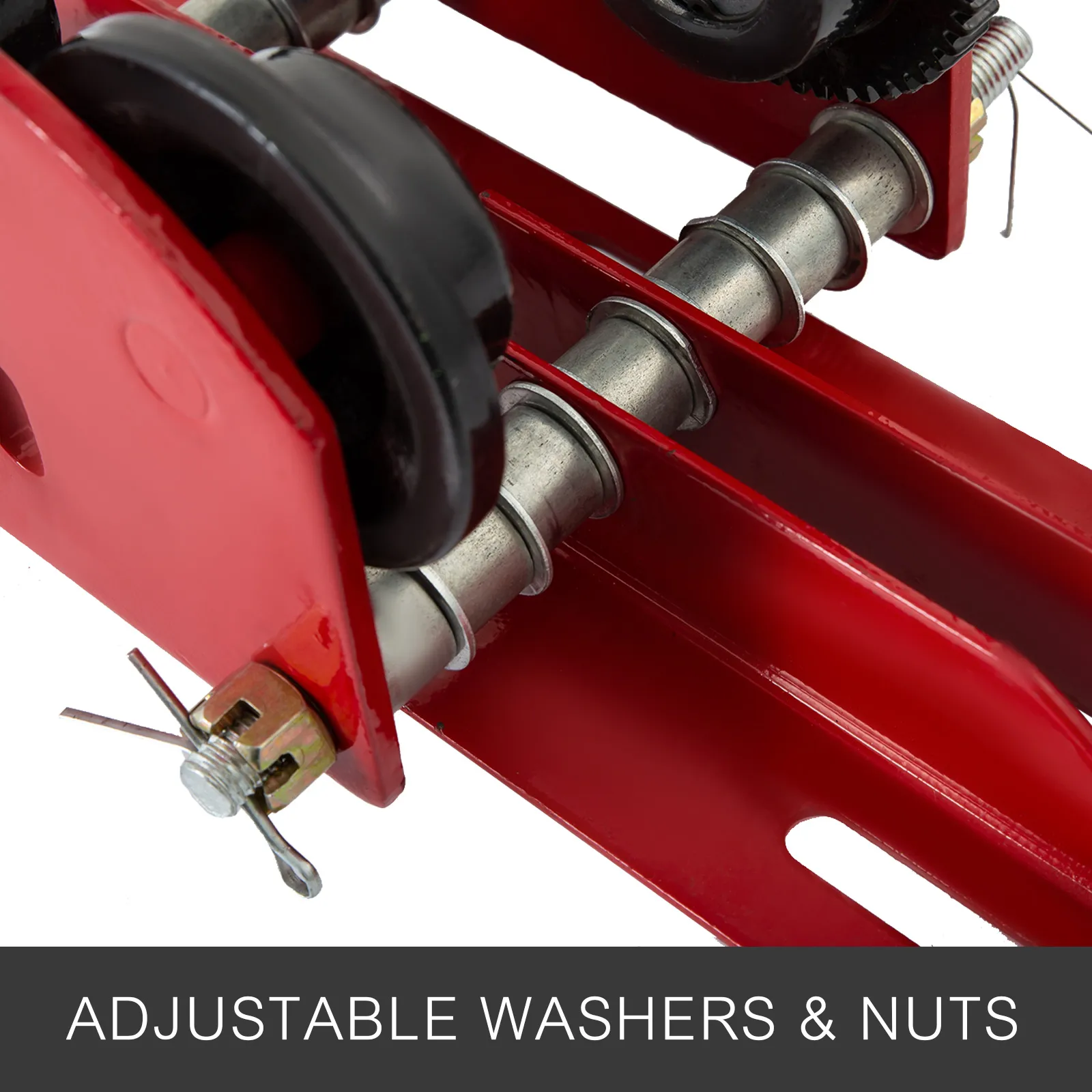 Die Unterlegscheiben sind leicht auf beide Seiten der Haupthalterungen zu bewegen, um die Breite der Schiene anzupassen. Die rutschfesten Muttern machen den Wagen stabiler, sicherer und zuverlässiger.