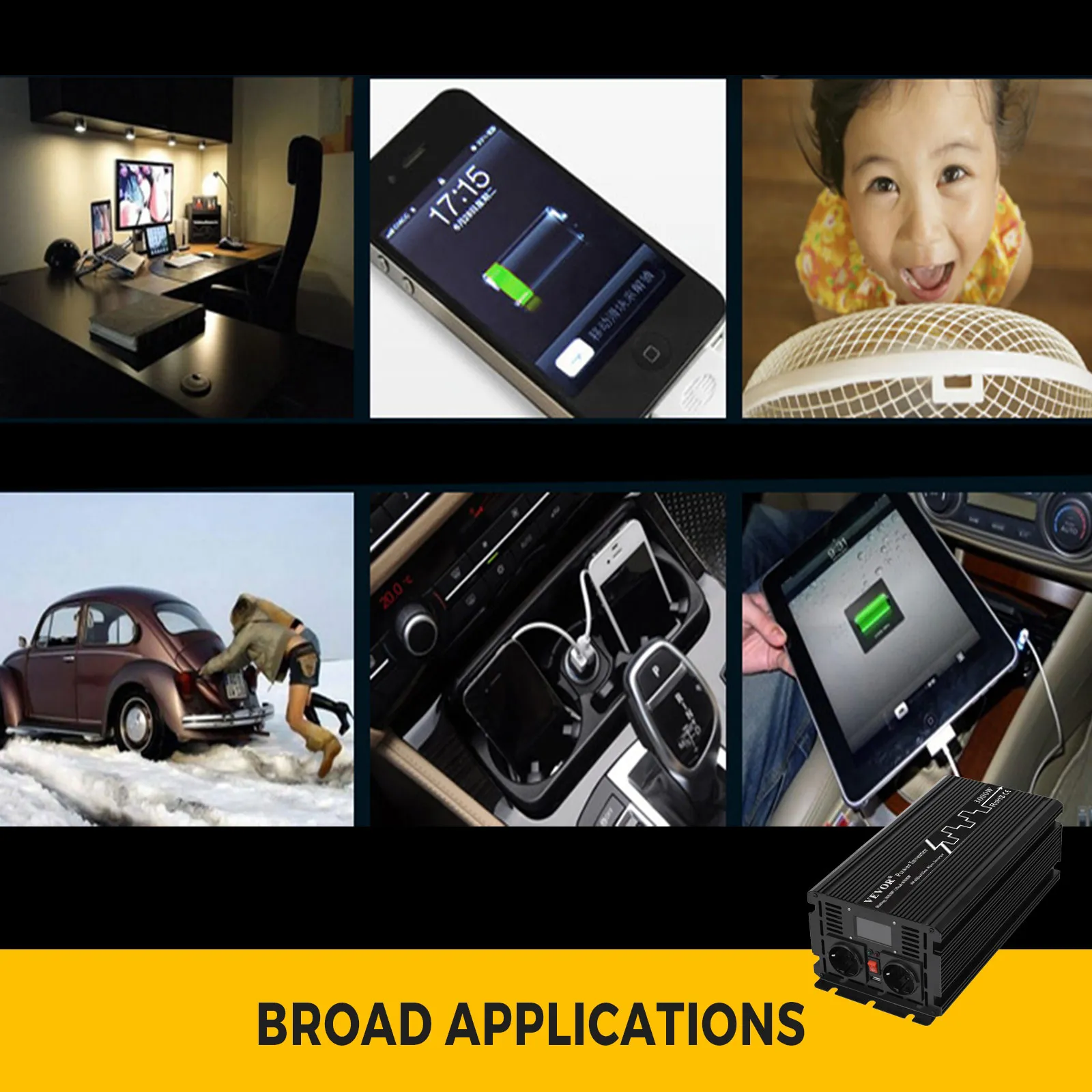 VEVOR-Logo mit dem Slogan „Robuste Ausrüstung & Werkzeuge, weniger zahlen“ in Schwarz und Gelb.