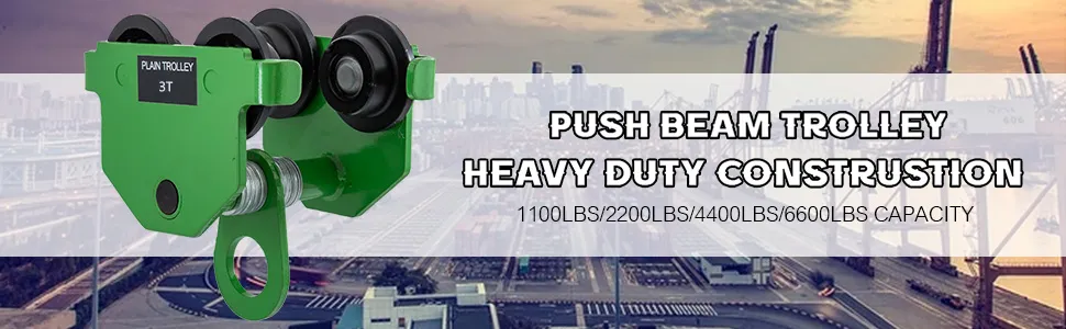 Das Schwerlast-Handfahrwerk ist verstellbar und passend für Standard oder I-Träger. Es ist belastbar bis zu 6600 lb. Die Doppelräder sind für eine gerade oder konische Trägerbahn ausgelegt. Solide Stahlkonstruktion, langlebige Pulverbeschichtung und vorgeschmierte, abgedichtete Lager sorgen für eine lange Lebensdauer. Es ist ein ideales Werkzeug für Lager, Garagen und andere Industriebereiche.