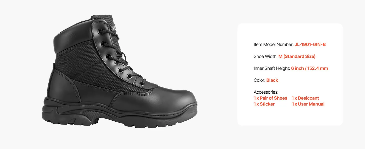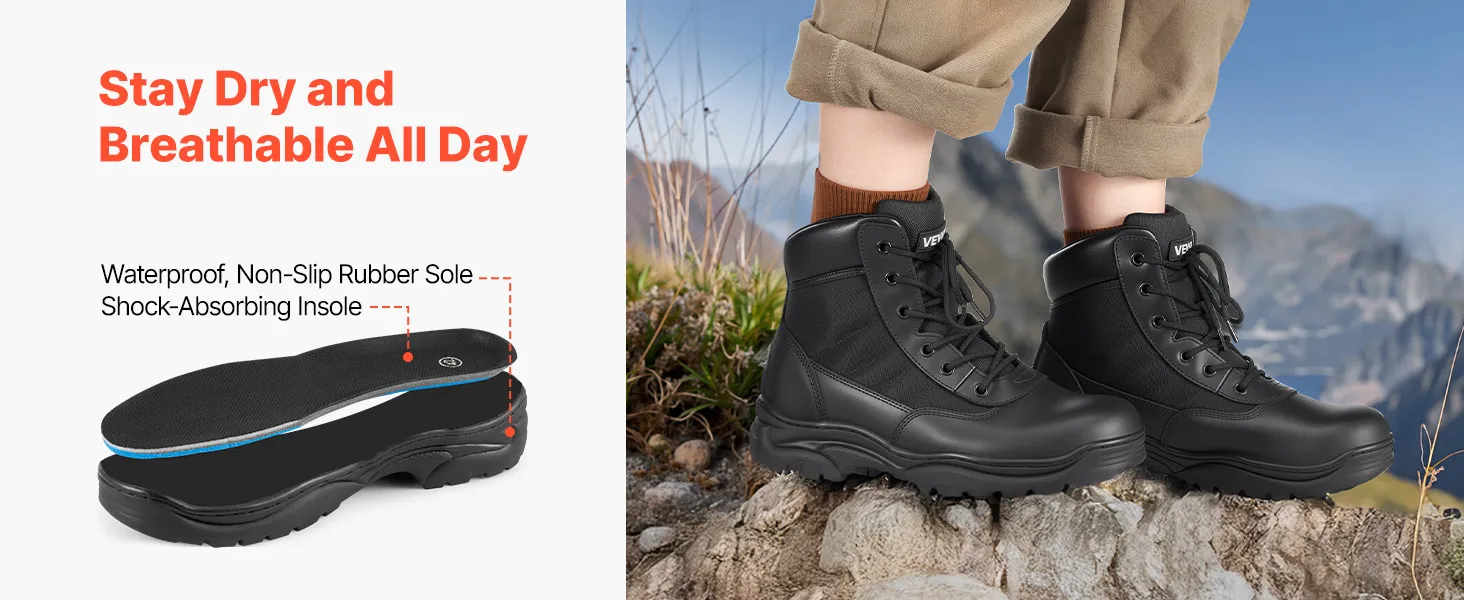 VEVOR Arbeitsstiefel für Herren, 152,4 mm Kampf- und Wanderstiefel, leichte, atmungsaktive und Motorradstiefel, Einsatzstiefel für Sicherheit im Bergsteigen im Freien, US-Größe 9