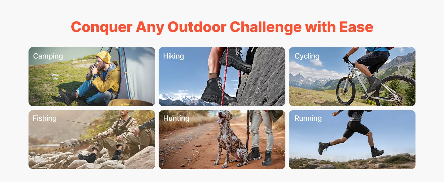 Diese Stiefel eignen sich zum Campen, Wandern, Radfahren oder Jagen und erfüllen eine Vielzahl von Outdoor-Anforderungen. Sie bieten soliden Halt und Schutz bei allen Erkundungen und Herausforderungen im Freien.