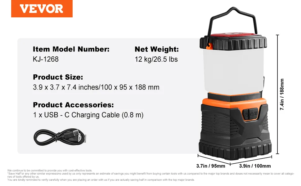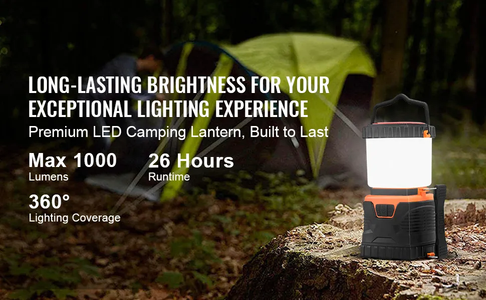 Powerbank mit langer Akkulaufzeit: Genießen Sie bis zu 26 Stunden Licht von der 1000-lm-Laterne und verwenden Sie sie in Notfällen als Powerbank. USB-C-Aufladung in 8–10 Stunden mit einem 0,8 m langen Kabel im Lieferumfang enthalten. Bleiben Sie mit Strom versorgt und für alles bereit, egal ob Sie campen oder mit Stromausfällen konfrontiert sind.