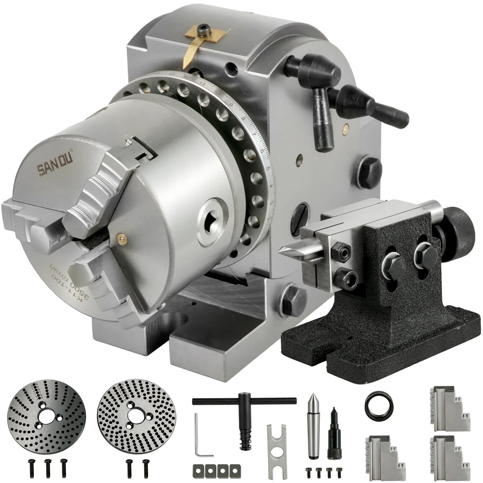 Sie können den verschiedenen Winkel (0-90 Grad) nach Bedarf mit dem Griff, der vertikale und horizontale Fräsmaschine mit Spindelstockfutter für Drehmaschineeinstellen. Spitzenhöhe: 4"/100mm.