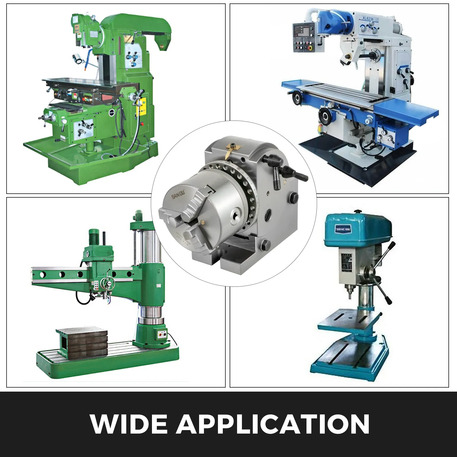 Der halbuniverselle Teilapparat ist ein einfaches Indexzentrum und kann für die direkte und indirekte Teilung verwendet werden. Zum Vervollständigen der Zahnrad-, Plan-, Flötenbearbeitung und des nicht benötigten Zubehörs, die gleiche Konstruktion wie der Universaltyp. Mit dem Rundschalttisch können die 24 schnell teilbaren Bohrung die 2,3,4,6,8,12,24 Teilungsindexierung abschließen.