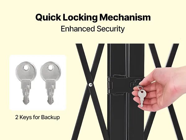 Robustes Sicherheitstor: Dieses Sicherheitstor besteht aus robustem Kanalstahl mit schwarzer Pulverbeschichtung für erhöhte Haltbarkeit. Sein einzigartiges manipulationssicheres Design schützt Ihr Eigentum effektiv vor unbeabsichtigtem Eindringen