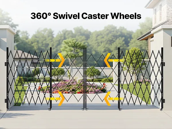 Flexible Rollen: Unser Scherentor verfügt über 360°-Lenkrollen mit Feststellern an der Unterseite zur Fixierung der Position. Die seitlich faltbare Tür bleibt sowohl im geöffneten als auch im geschlossenen Zustand frei. Die sanften Rollen ermöglichen einfachen Transport und Lagerung