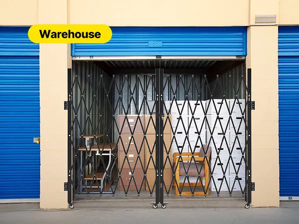 Breite Anwendung: Dieses faltbare Sicherheitstor wird häufig in Wohnhäusern und Industrieanlagen eingesetzt, um Bereiche zu schließen und gleichzeitig die Sicht und den Luftstrom aufrechtzuerhalten. Es bietet zusätzliche Sicherheit für Keller, Garagen, Schaufenster usw