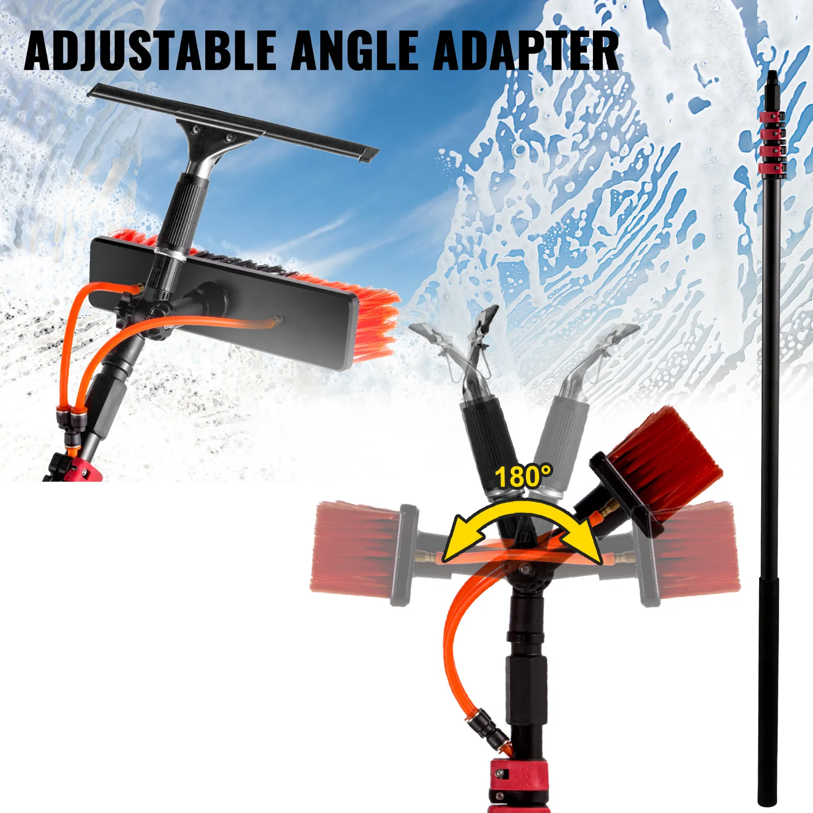 7 m langer Schlauch: Unser wassergespeister Stangensatz wird mit einem 0,8 mm x 7 m Wasserschlauch, einer 1/4 Zoll Messingkupplung, einem Wasserabscheider und einem Adapter für den einfachen Anschluss an verschiedene Wasserquellen geliefert. Das Wasser kann durch einen Wasserschlauch geleitet werden, der in die Stange eingeführt wird und die beiden Düsen am Bürstenkopf erreicht, was eine effektive Reinigung gewährleistet.