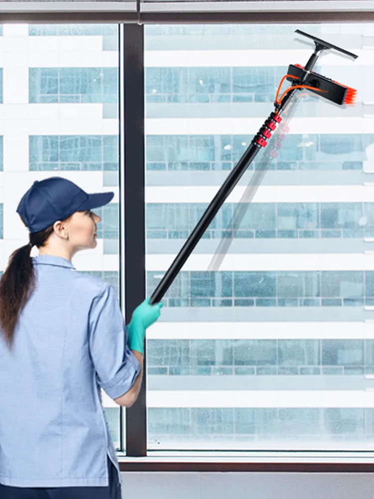Perfekt für Wohn- und Geschäftsanwendungen. Unser wassergespeistes Polsystem eignet sich zur Reinigung verschiedener Böden von Fenstern, Sonnenkollektoren, Glaswänden usw.