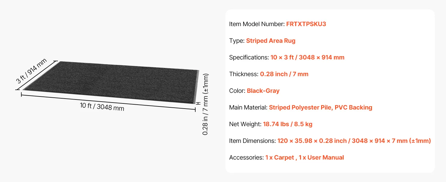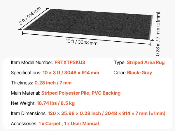 Große Größe: Die Fußmatte für die Vordertür misst 10 x 3 Fuß / 3048 x 914 mm mit einer Dicke von 0,28 Zoll / 7 mm und passt perfekt in Flure, Terrassen und Veranden