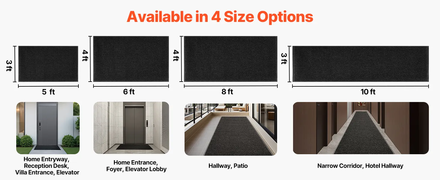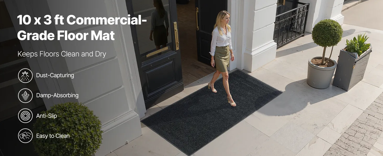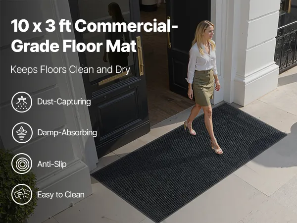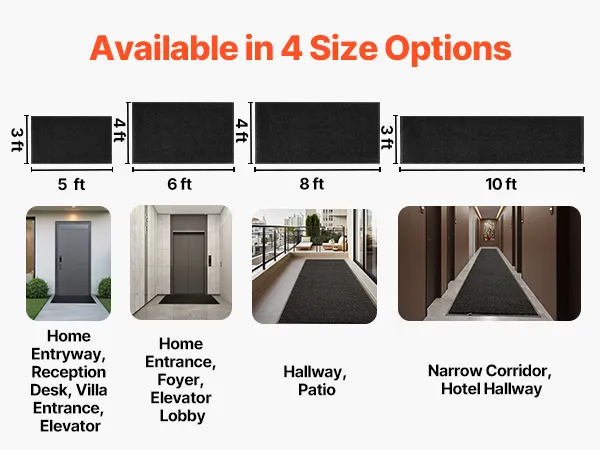 Die Fußmatte für die Vordertür misst 10 x 3 Fuß (3048 x 914 mm) und deckt Flure, Terrassen, Veranden und andere offene Bereiche perfekt ab. Sie ist praktisch und passt vielseitig.