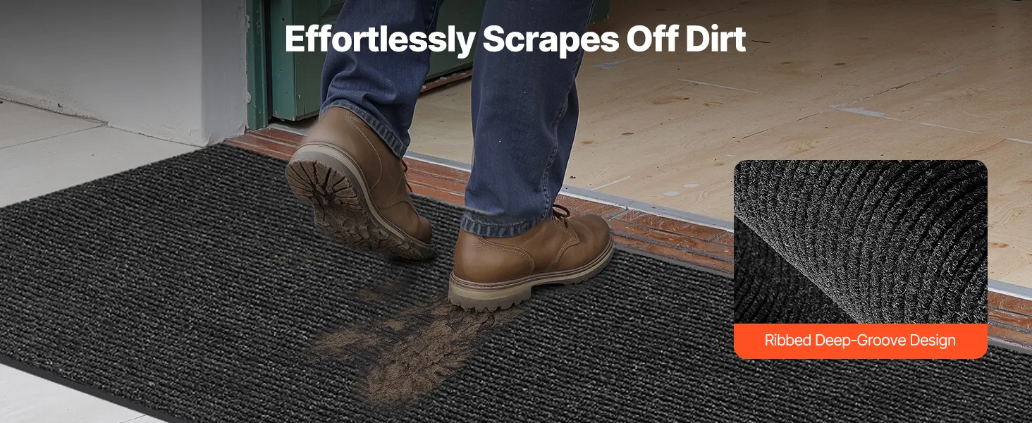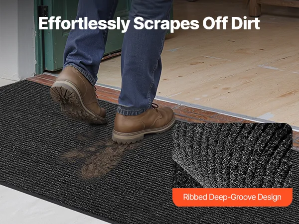 Langlebige Oberfläche: Der Türteppich verfügt über ein gestreiftes 3D-Rillendesign, das die Reibung erhöht und verschleißfest ist. Es entfernt effektiv Schmutz, fängt Staub ein und hält Böden sauber und trocken