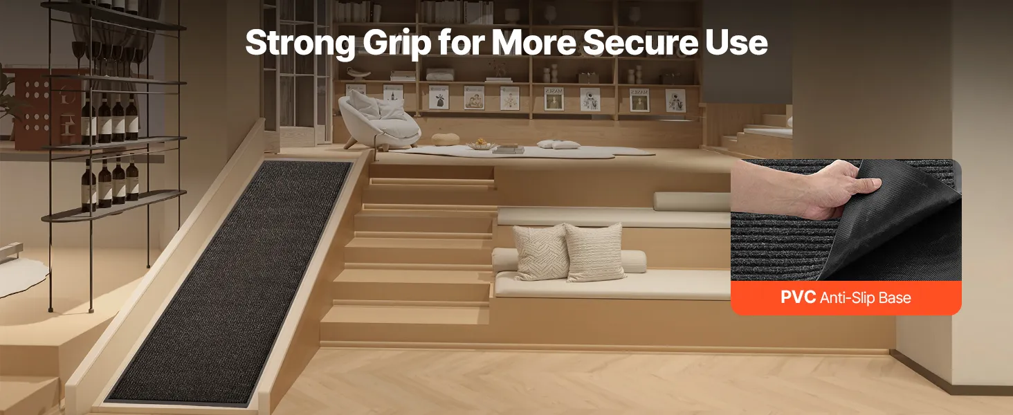 Rutschfeste Rückseite: Unsere Industriebodenmatte besteht aus strapazierfähigem PVC, die Rückseite ist rutschfest und bleibt fest an ihrem Platz, ohne sich aufzurollen, wodurch das Risiko von Ausrutschern verringert wird