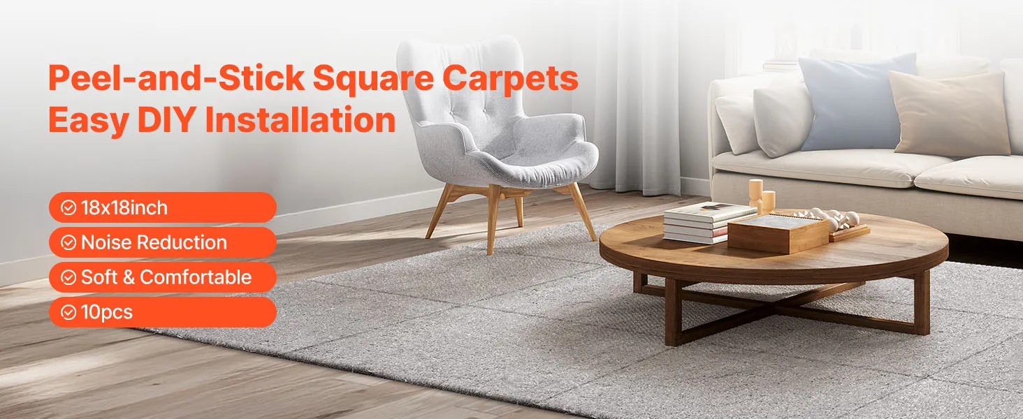 Diese quadratischen Teppichfliesen eignen sich für verschiedene Innenräume. Sie sorgen nicht nur für ein gemütliches Raumgefühl, sondern reduzieren auch Lärm, bieten Polsterung und schützen harte Bodenbeläge.