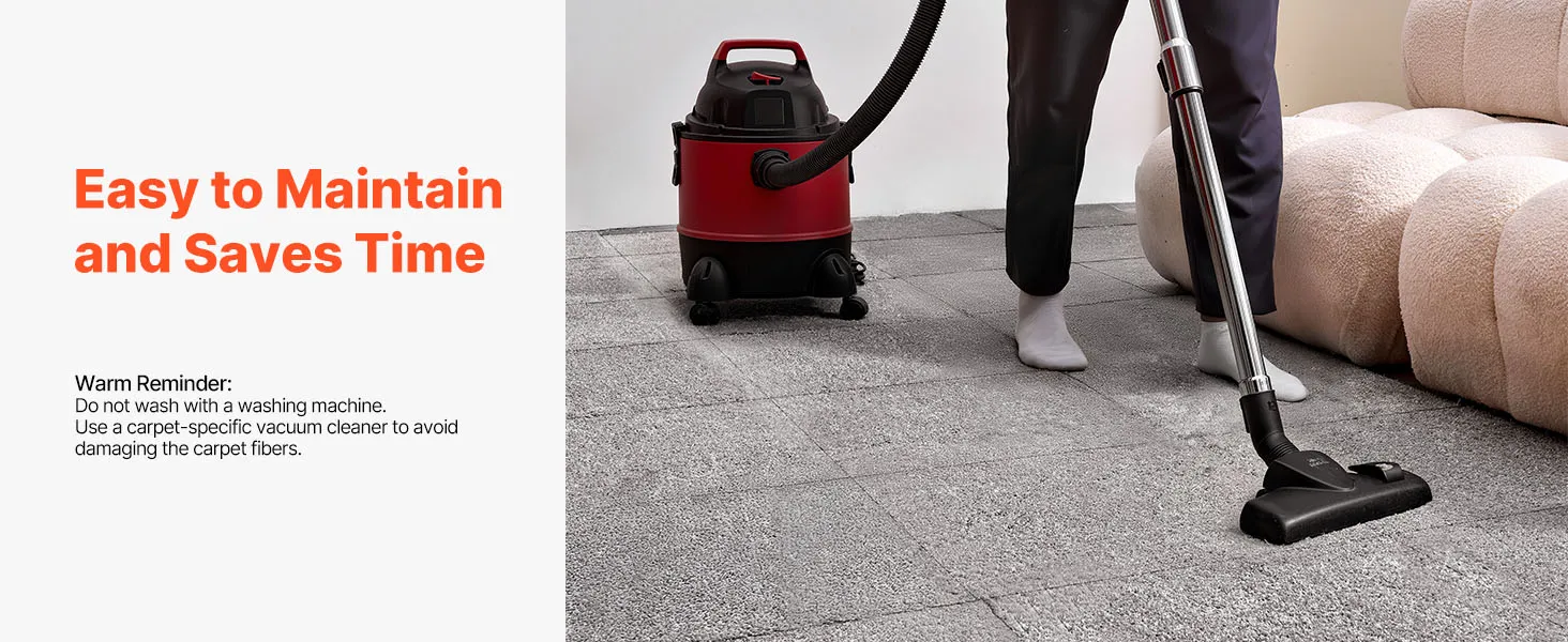 Pflegeleicht: Im Gegensatz zu großen, schwer zu reinigenden Teppichen müssen bei diesem modularen Teppichquadratsystem nur die schmutzigen Fliesen ausgetauscht werden. Leicht zu reinigen, leicht auszutauschen – ideal für vielbeschäftigte Haushalte oder Büros.