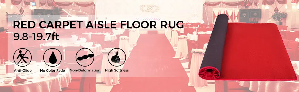 100% Polyester (Spritze) & TPR (Rückseite) Material, kratzfest & kein Verblassen der Farbe. Dieser rote Teppich aus Hollywood ist unverformt, verschleißfest und stoßdämpfend.