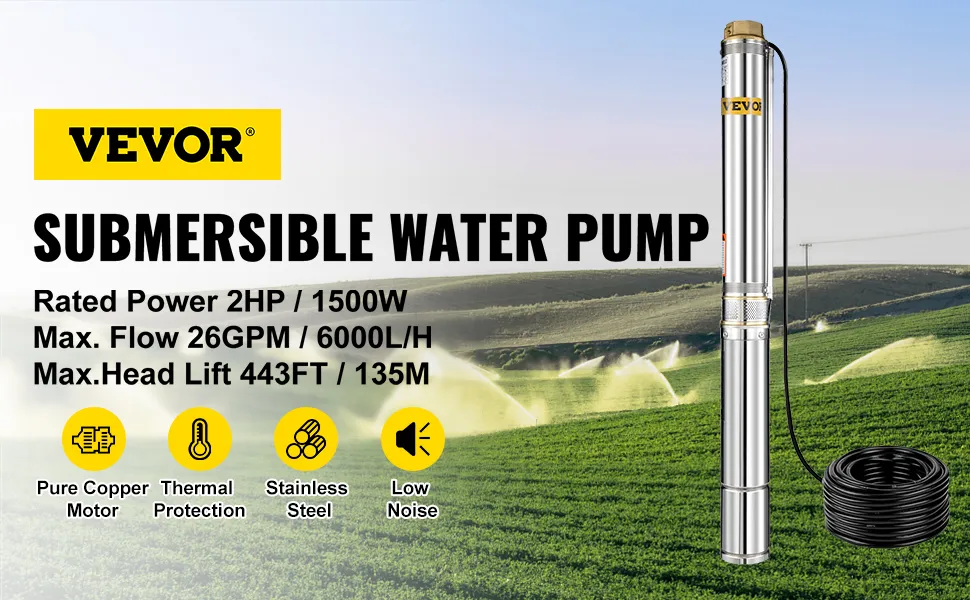 • Große Förderhöhe & Durchfluss: Der leistungsstarke Durchfluss der Tiefbrunnenpumpe kann 26 GPM erreichen, und die Förderhöhe erreicht 135 m. Bequemer und effizienter, um Wasser zu verwenden. Hochbelastbare thermoplastische Laufräder sorgen für einen großen Durchfluss und eine hohe Förderhöhe.