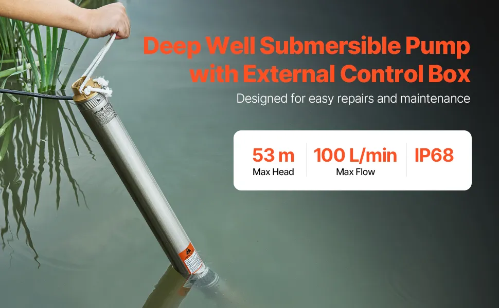 Mit externer Steuerbox: Diese Tiefbrunnenpumpe wird mit einer externen Steuerbox für einfache Bedienung und Wartung geliefert. Mit einem Kupfermotor sorgt sie für einen starken, stabilen Wasserfluss und gewährleistet eine zuverlässige Leistung für Ihren gesamten Wasserbedarf.