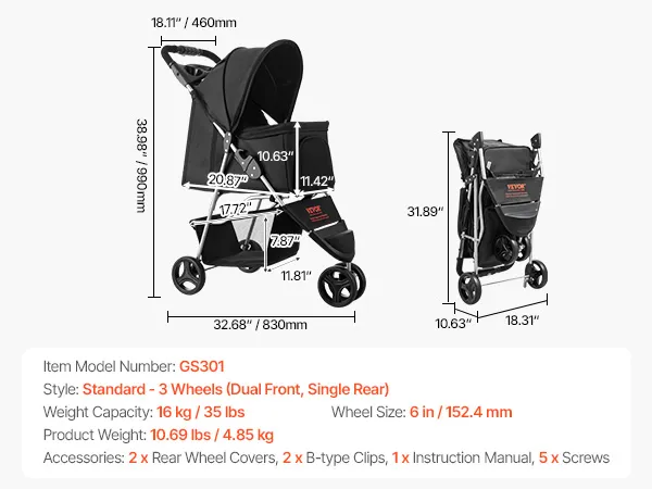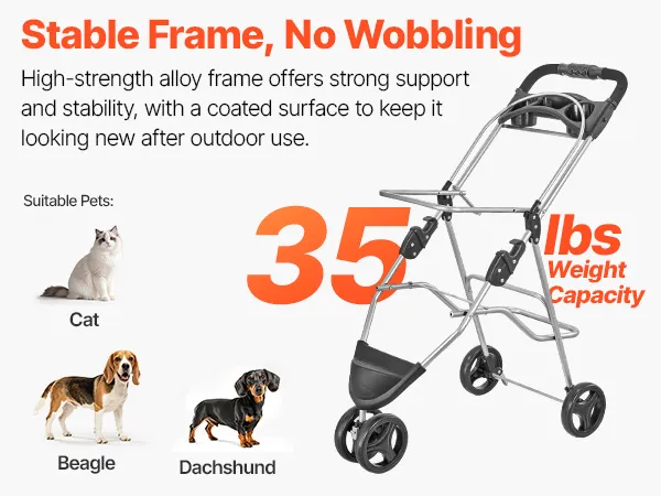 Robustes und langlebiges Design: Dieser Katzenbuggy ist für ein Gewicht von bis zu 16 kg ausgelegt und eignet sich ideal für kleine Hunde, große Katzen oder mehrere Haustiere. Der rostbeständige Rahmen aus einer Legierung sorgt für dauerhafte Stabilität und Zuverlässigkeit, ideal für Familien mit mehreren Haustieren oder Abenteuer unterwegs.