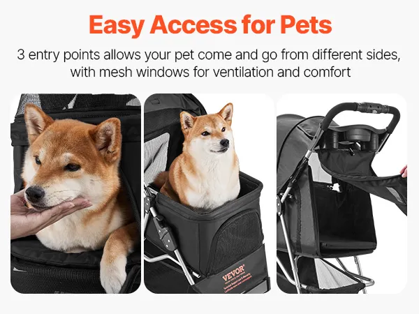 Haustiere können leicht in den Kinderwagen einsteigen