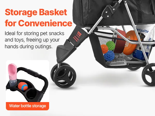 Großer Aufbewahrungskorb: Ausgestattet mit einem stabilen Bodenkorb für wichtige Dinge wie Leckerlis, Spielzeug oder Wasserflaschen macht dieser Tierbuggy jeden Ausflug bequemer. Entwickelt, um älteren, verletzten oder in ihrer Mobilität eingeschränkten Haustieren zu helfen, die Natur ohne Beschwerden zu genießen.