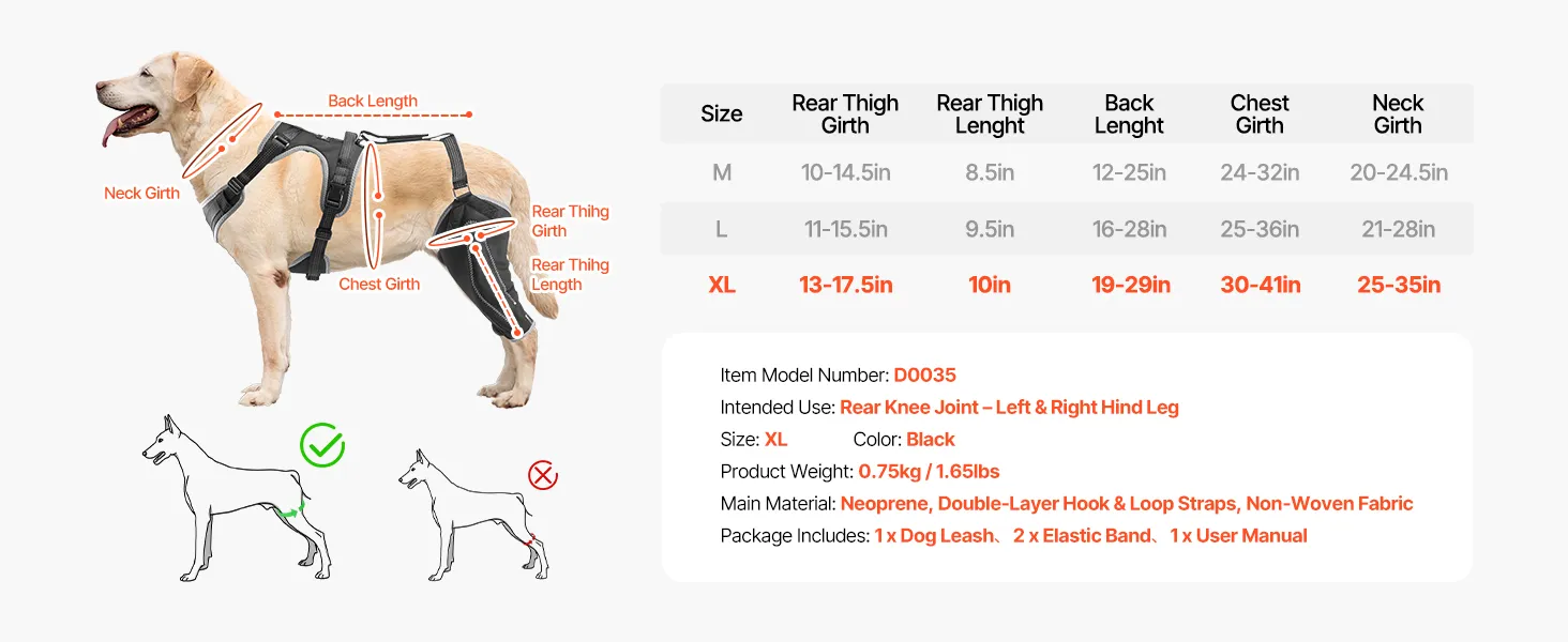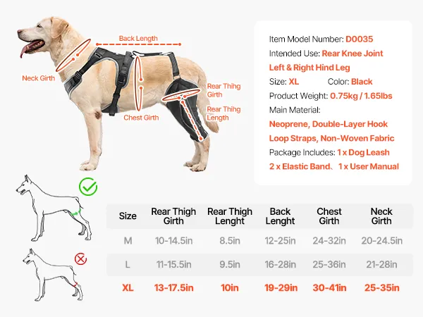 VEVOR Knieorthese für Hunde bei gerissenem vorderem Kreuzband, Kniebandagen, Kniestützgeschirr für rechtes & linkes Hinterbein, Schmerzlinderung, Gelenkstütze für Hunde bei Arthritis