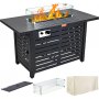 VEVOR-Gasfeuerstellentisch mit Windschutz aus Glas, Schutzhülle und Bedienknöpfen in Schwarz.