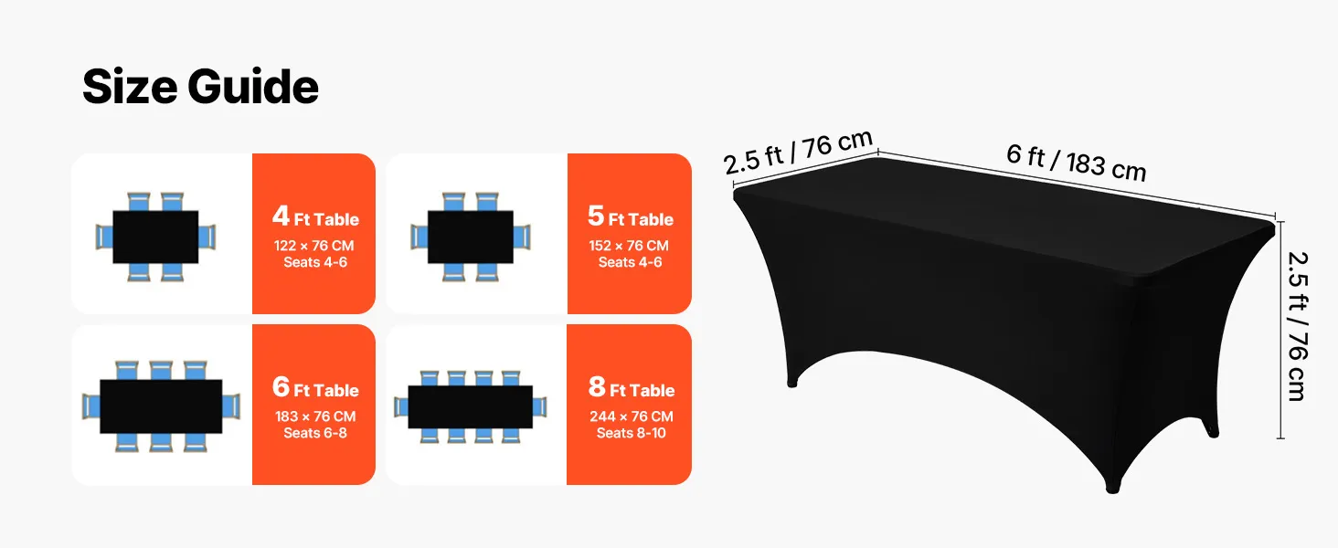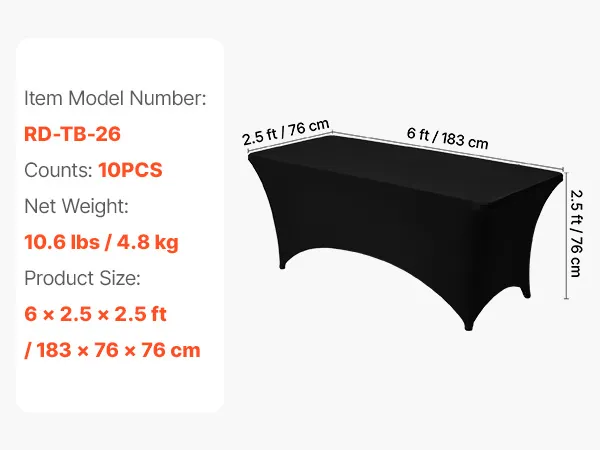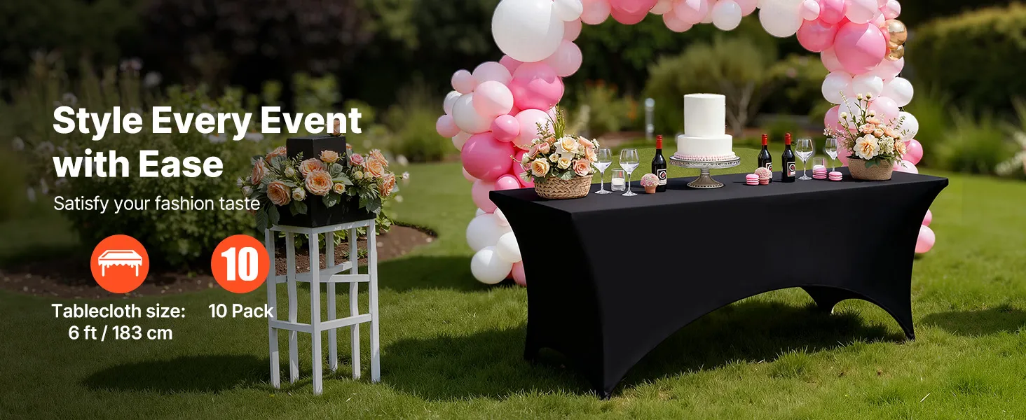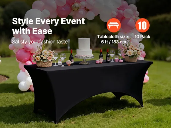 Spandex-Tischdecken-Set: Unser hochwertiges Spandex-Tischdecken-Set schützt effektiv vor Verschüttetem, Flecken und Kratzern. Das Paket enthält 10 schwarze rechteckige Polyester-Tischdecken, passend für 6 Fuß (1829 mm) lange rechteckige Tische. Bitte messen Sie Ihre Tischgröße vor dem Kauf.