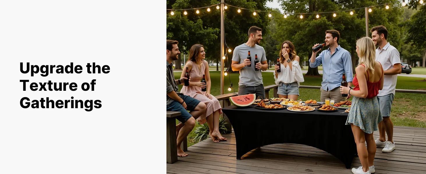 Diese elegante Stretch-Tischdecke aus hochwertigem Spandex-Stoff wertet das Gesamtbild Ihres Tisches auf. Ideal für Hochzeiten, Abschlussfeiern, Geburtstage und andere besondere Anlässe verleiht sie Ihrer Veranstaltung eine raffinierte und stilvolle Note.
