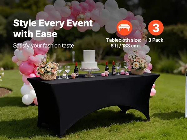 Spandex-Tischdecken-Set: Unser hochwertiges Spandex-Tischdecken-Set schützt effektiv vor Verschüttetem, Flecken und Kratzern. Das Paket enthält 3 schwarze rechteckige Polyester-Tischdecken, passend für 6 Fuß (1829 mm) lange rechteckige Tische. Bitte messen Sie Ihre Tischgröße vor dem Kauf