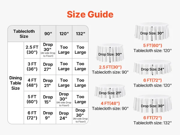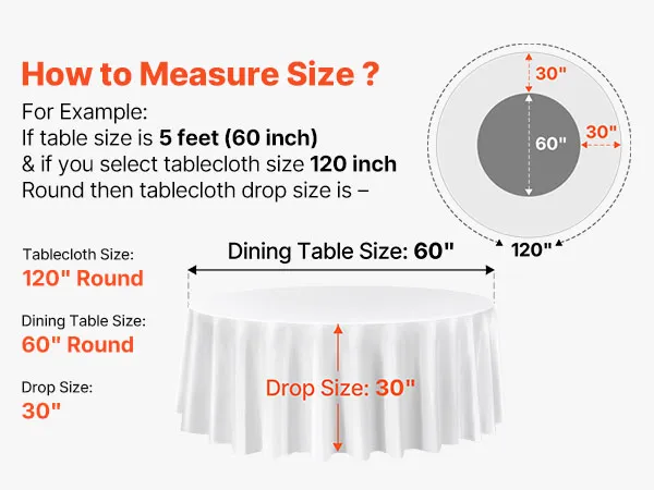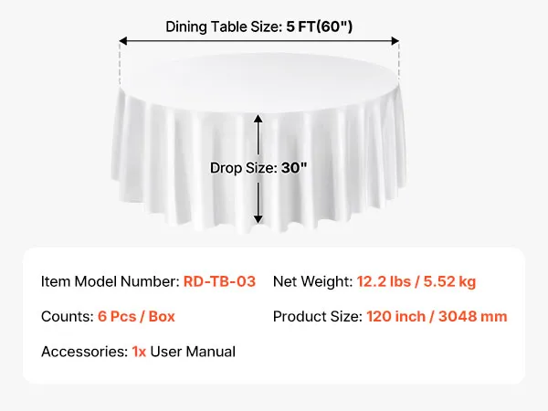 Rundes Tischdecken-Set: Diese runde Tischdecke schützt vor Verschüttetem, Flecken und Kratzern. Das Paket enthält 6 Packungen weiße runde Polyester-Tischdecken mit jeweils 120 Zoll (ca. 3048 mm) Durchmesser. Stilvoll und vielseitig. Bitte messen Sie Ihre Tischgröße vor dem Kauf und beachten Sie unsere Größentabelle für die beste Passform