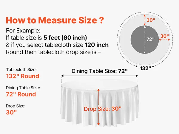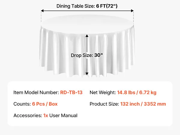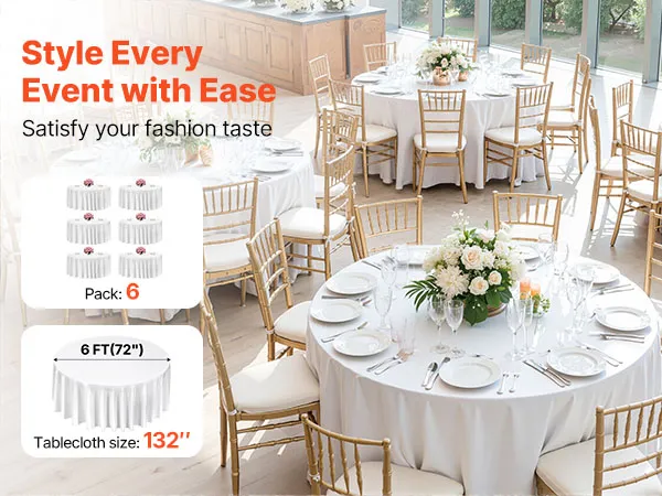 Rundes Tischdecken-Set: Diese runde Tischdecke schützt vor Verschüttetem, Flecken und Kratzern. Das Paket enthält 6 Packungen weiße runde Polyester-Tischdecken mit jeweils 132 Zoll (3352 mm) Durchmesser. Stilvoll und vielseitig. Bitte messen Sie Ihre Tischgröße vor dem Kauf und beachten Sie unsere Größentabelle für die beste Passform