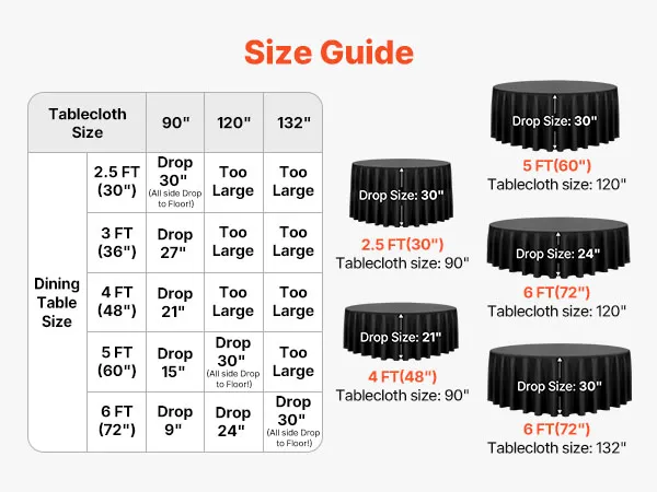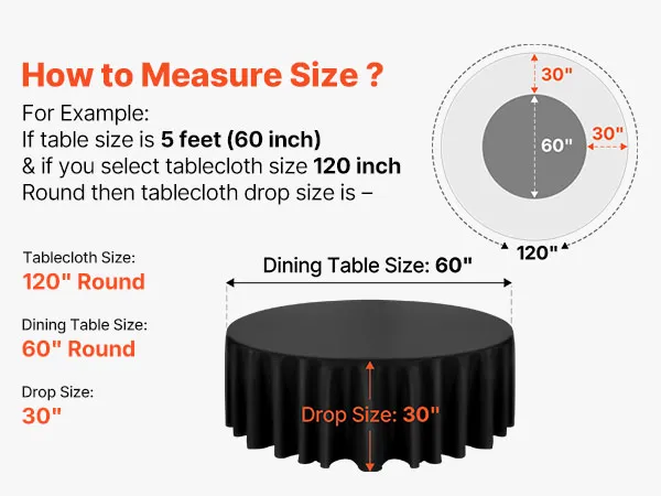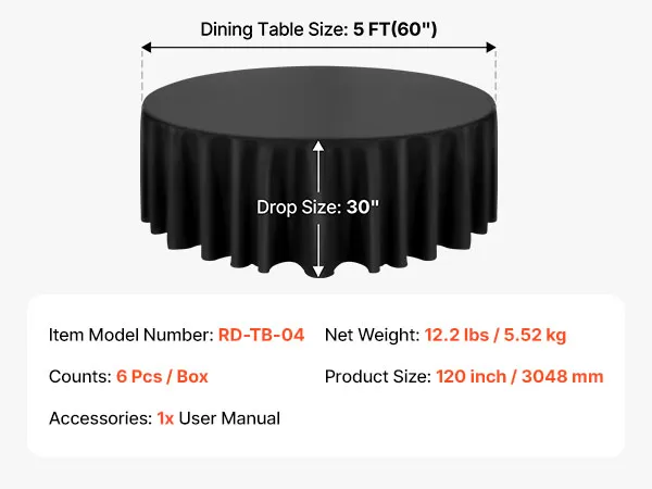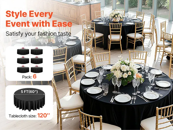 Rundes Tischdecken-Set: Diese runde Tischdecke schützt vor Verschüttetem, Flecken und Kratzern. Das Paket enthält 6 Packungen schwarze runde Tischdecken aus Polyester mit jeweils 120 Zoll (3048 mm) Durchmesser. Stilvoll und vielseitig. Bitte messen Sie Ihre Tischgröße vor dem Kauf und beachten Sie unsere Größentabelle für die beste Passform