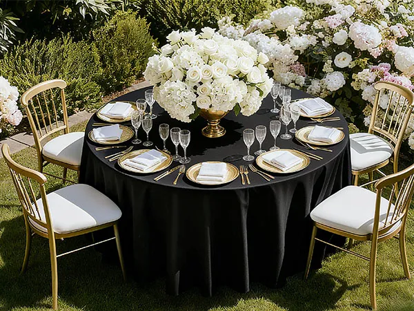 Diese elegante Tischdecke aus hochwertigem Polyestergewebe wertet das Gesamtbild Ihres Tisches auf. Ideal für Hochzeiten, Abschlussfeiern, Geburtstage und andere besondere Anlässe, verleiht sie Ihrer Veranstaltung einen Hauch von Eleganz und Stil.